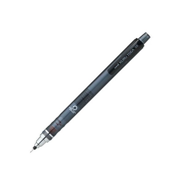 Portaminas con punta rotatoria. Un portaminas normal hace que la mina se desgaste siempre por el mismo lado provocando que el trazo no sea todo lo fino que nos gustaria. El modelo Kuru Toga incorpora un sistema de punta rotatoria que con la presión de la escritura la mina realiza un pequeño giro. De esta forma la mina se va desgastando uniformemente, manteniendo la punta mas afilada. Previene la rotura de la mina y gasta menos mina al reducir su superficie de contacto. Trazo de 0,5 mm, contiene 2 minas HB y goma de borrar en el pulsador.