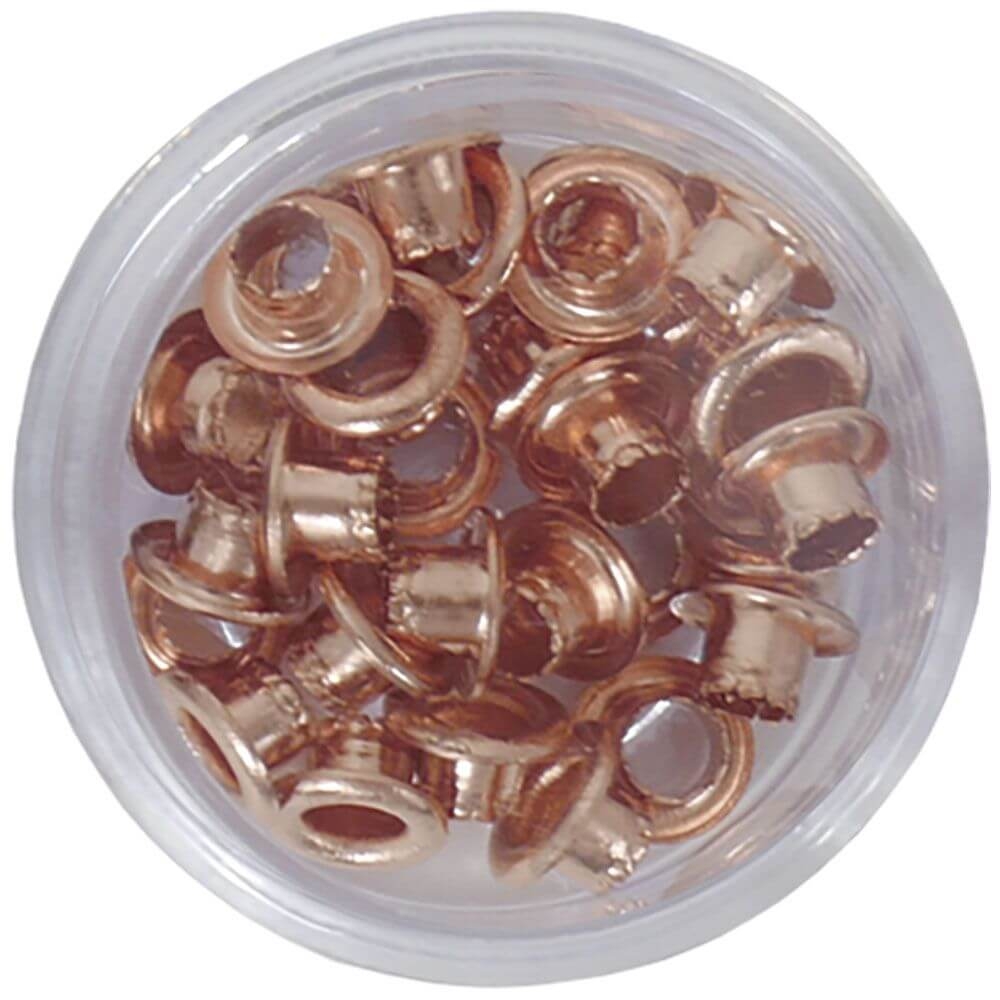 EYELETS ALUMINIO ARTIS DECOR CAJA 30 UND. METALICO ORO ROSA Caja con 30 ojales (eyelets). Eyelets para proyectos de scrapbooking, tarjetería y otros trabajos de manualidades con goma eva, fieltro, etc. Tamaño ojales: 0.5 cm interior, 0.8 cm exterior Acabado: metálico Color: Oro Rosa