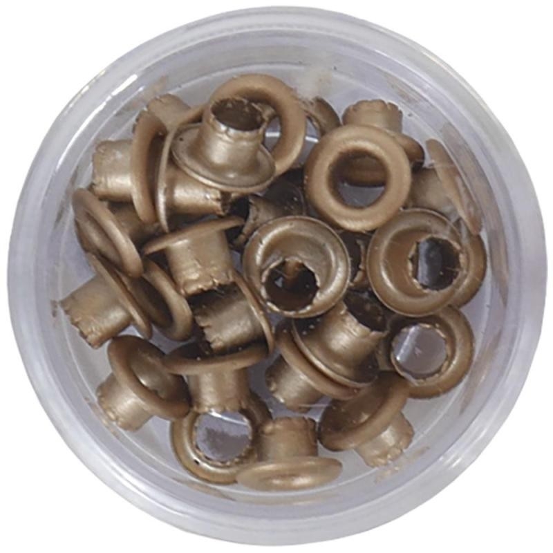 EYELETS ALUMINIO ARTIS DECOR CAJA 30 UND. METALICO ORO VIEJO Caja con 30 ojales (eyelets). Eyelets para proyectos de scrapbooking, tarjetería y otros trabajos de manualidades con goma eva, fieltro, etc. Tamaño ojales: 0.5 cm interior, 0.8 cm exterior Acabado: metálico Color: Oro Viejo